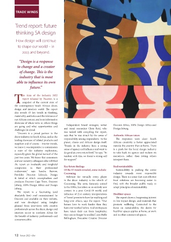 interiors sector in southern Africa for have taken their cue from hospitality; healthier spaces applies at home, at work