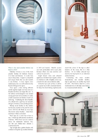 and unique finish that can add warmth in a kitchen is with a brightly colour tap, monochrome and metallic finishes,