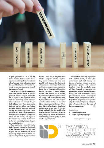 principal interior designer, responsible by implementing business systems, which practitioners can follow. I encourage all